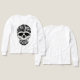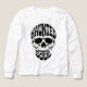 Crâne noir et blanc gras avec typographie incurvée 'Hanté'/'Âme' ; motif gothique à fort contraste pour les fans d'Halloween, de rock et de mode urbaine en quête d'un bord intrépide.