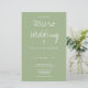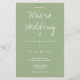 Une faire-part de mariage sur le document budgétaire pour un micro-mariage. Cette invitation en papier léger est faite en sauge et blanc avec juste assez d'informations pour gagner la journée. (De plus, l'option papier satiné est très mince et le papier semi-brillant est suggéré.) Ajoutez simplement vos informations, ajoutez cet invitation à votre panier et profitez de votre petit mariage intime. (La collection comprend des versions de cette invitation sur des types de papier plus lourds, plus traditionnels) Micro Mariage Sage Typographie Budget Papier Invitation Jour férié Conception | ©Melissa Patton - Designer