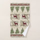 "Lodge Deer Christmas Tree Typographie Joyeux ensemble de serviettes de bain de Script brillant." L'art des mots inspirant et émotionnel remplit les arbres de Noël de la forêt. Blonde arrière - plan de bois rustique avec des couches rayées d'éléments thématiques de Noël et d'hiver : silhouettes de cerfs avec buffle rouge et noir chèque plaid avec des ornements suspendus de leurs bois. Forêt d'arbres de Noël avec texte typographique, y compris la joie, les souvenirs, la famille, Joyeux Noël, traditions et la paix sur Terre. Tout l'art a été créé par Audrey Jeanne Roberts, artiste et designer de renommée internationale, copyright.