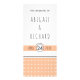 Présentant notre programme de mariage économique avec une typographie dessinée à la main et un motif de pêche délicieux. En bas, vous découvrirez une belle combinaison de formes géométriques blanches et pêche, ajoutant une touche d'élégance au design. Pour le rendre encore plus spécial, nous avons inclus une bannière montrant la date du mariage, tandis que les noms du couple sont gracieusement écrits dans une typographie fantaisiste dessinée à la main, lui donnant une sensation personnalisée et unique.