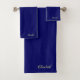Custom Modern Elegant Modèle Faux Gold Typographie Nom Couleur Solide Marine Bleu Salle de bain / Serviettes de bain / Linge + Serviette à main + Serviette de bain / Serviette de bain.