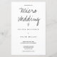 Une faire-part de mariage sur le document budgétaire pour un micro-mariage. Cette invitation en papier léger est faite en noir et blanc avec juste assez d'informations pour gagner la journée. Ajoutez simplement vos informations, ajoutez cet invitation à votre panier et profitez de votre petit mariage intime. (De plus, l'option papier satiné est très mince et le papier semi-brillant est suggéré.) (La collection inclut des versions de cette invitation sur des types de papier plus lourds, plus traditionnels) Micro Mariage Dusty Budget Papier Invitation Jour férié Conception | ©Melissa Patton designer