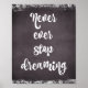 Typographie du tableau noir : Impression de l'affiche des citations de rêve. arrière - plan en damier noir d'inspiration vintage aux bords de craie d'inspiration antique, "N'arrêtez jamais de rêver". Voir plus sur Quote Life Boutique.