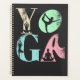 Typographie de yoga rétro avec lettres pastel et silhouettes de poses, parfaite pour les amateurs de yoga et cadeaux de vie.