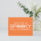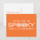 Typographie Éffrayante simple et moderne Halloween Greeting Carte postale en orange et blanc avec un design de texte cool avec deux fantômes fantaisistes regardant à travers le mot "Éffrayant". Cette carte postale élégante est une excellente façon de souhaiter un Happy Halloween à vos amis et à votre famille. Facile à customiser, ajoutez votre propre texte éffrayant ! Cliquez sur le bouton "Customiser" pour déplacer l'élément de conception, modifier les polices ou les couleurs de texte, et ajouter/supprimer du texte supplémentaire.