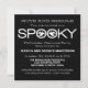 Typographie Éffrayante simple et moderne Invitation de la fête d'Halloween en noir et blanc avec un design de texte cool avec deux fantômes fantaisistes regardant à travers le mot "Éffrayant". Cette invitation à la fête élégante est parfaite pour votre bash d'Halloween cette année et est facile à personnaliser avec les détails de votre fête amusante. Cliquez sur le bouton "Customiser" pour déplacer l'élément de conception, modifier les polices ou les couleurs de texte, et ajouter/supprimer du texte supplémentaire.