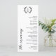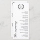 Élégant programme de mariage 9x4 dans un design de typographie noir et blanc avec un monogramme de couronne de laurier et de belles polices. Programme de mariage typographique avec un monogramme verdoyant et de belles polices. Programme de mariage plat avec un monogramme élégant et de belles polices et détails de verdure en noir contre un arrière - plan blanc.