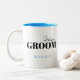 Elégant design moderne minimaliste typographie d'équipe design en noir et bleu, simple et unique. Grands cadeaux de Bachelor Party pour les équipes de mariés Voir les tasses de mariée d'équipe assorties dans la collection. Customisez la tasse et la couleur du texte avec votre choix.