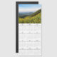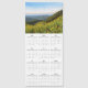 Design est composé de calendrier 2020 avec police manuscrite et extérieur sauvage remplie de fleurs jaunes et de montagnes.