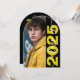 Célébrez votre diplômé en style avec cette faire-part moderne et audacieuse en forme d'arc! Doté d'une palette noire et blanche élégante avec des pops audacieux de jaune, ce design minimal ajoute juste la bonne quantité de personnalité au grand jour. Le dos présente les détails de votre diplômé, ce qui en fait un endroit idéal pour partager avec vos amis et votre famille. Simple, élégant et plein d'énergie, comme votre grad ! Créé par Simply Farmhouse Press.