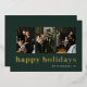 Typographie Vert Moderne Or Joyeux Vacances Photo Real Foil Carte Vacances. Envoyez des voeux de vacances avec des photos à vos proches avec cette carte de vacances Foil moderne et festive. Tous les textes sont pré-arrangés pour que vous personnalisiez facilement et rapidement avec vos propres détails. Joyeuses fêtes !