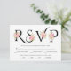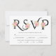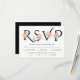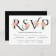 Elégante typographie noir et blanc et roses roses roses RSVP carte avec choix de repas. Ce design de mariage élégant présente le "RSVP" dans une police décorative en noir avec un bouquet de roses roses. Le dos est de couleur noire.