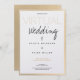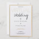 Un faire-part de mariage virtuel réalisé en blanc, or (non-feuille) et noir avec des informations sur la façon de se connecter au mariage en ligne. Ajoutez simplement vos informations, ajoutez cet invitation à votre panier et profitez de votre mariage en ligne.