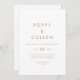 Ce faire-part de mariage décontracté de typographie or chic est parfait pour un mariage moderne. Le design simple présente une typographie classique minimaliste d'or et de blanc, dans un style boho rustique. Personnalisable dans n'importe quelle couleur. Gardez le design minimal et élégant, en l'état, ou personnalisez-le en ajoutant vos propres graphiques et artwork.