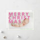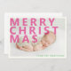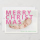 Célébrez votre premier Noël avec une touche design et moderne. Ce carte photo de vacances minimaliste vous propose un joyeux Noël en lettres sans serif rose et transparentes placées sur votre photo de famille ou de nouveau-né préférée. Un accueil personnalisé dans un élégant texte vert transparent ancre le fond, ce qui rend cette carte à la fois unique et chaleureuse. Conçu pour des images aux tons clairs, le revêtement transparent laisse briller le visage de vos proches tout en maintenant une esthétique contemporaine et propre. Parfait pour les nouveaux parents ou familles qui souhaitent partager la joie des vacances avec une touche moderne.