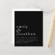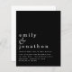 Typographie simple Mariage noir blanc.Un prix économique PLUS PETIT 4.5" x 5.6" alternative. Disponible dans un STOCK SEMI-GLOSS 110 lb CARD qui est l'option par défaut (plus épais pour les invitations), OU un STOCK SATIN FINISH 80 lb THINNER PAPER (idéal pour les boîtiers). Les enveloppes sont en option et légèrement plus grandes que la taille de la carte. Simple et. Informel, vos prénoms sont grands en minuscules élégantes avec les détails au dessous. Personnalisez facilement le texte.