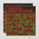 Ce Dîner d'action de grâces cool présente une typographie cool avec de nombreux mots liés à l'action de grâces. Il dispose d'un petit coin à l'arrière pour ajouter des détails d'invitation. Très amusant pour un Thanksgiving moderne cool.
