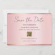 Trendy Modern Elegant Rose Gold Calligraphy Script Save The Dates Template With Your Wedding Website QR Code Invitations & Stationery & Announcements / Save the Dates / Printed Flat Rounded Corner Save The Date Card.