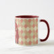 This pretty, colorful mug features my original graphic art of an 'ugly Christmas sweater' in red with ornaments on the sweater placed on a peach toned argyle patterned background. It has a red color inside it and on the handle. These are 11-ounce mugs, just the perfect size for your home brewed coffee or tea - or even hot chocolate! It would make a great gift and you can put packets of coffee, tea bags or hot chocolate inside. One other gift idea is putting a little plant in it to make it extra special for your loved one. A fun Christmas Holiday gift for anyone.