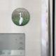 Aimant rond avec une photo d'une grue blanche et temporisation