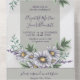 Tout en un seul faire-part de mariage. Aquarelle de fleurs pourpres et grises ressemblant à des marguerites.