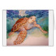 Tortue de mer d'imbécile, belle aquarelle avec une gamme de l'éventail des tonalités du littoral de la Floride avec cette tortue de mer montrée ci-dessus le titre de plongeur vers le rivage. De beaux motifs peuvent être vus sur le visage, les nageoires et la coquille.