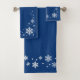 Élégante serviette bleue sertie de flocons blancs.