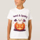 Amusez-vous dans votre garde-robe d'Halloween avec cet adorable t-shirt "Sweet & Éffrayant" ! Il présente un mignon fantôme de dessin animé avec des ailes de chauve-souris qui surgissent d'un jack-o’lanterne sculpté. Le fantôme a de grands yeux noirs, des joues roses et un sourire joyeux et ouvert tout en tenant une sucette tourbillonnante. Le visage citrouille brillant ajoute une touche espiègle, entouré de formes de starburst orange vif. Parfait pour les fêtes d'Halloween, les astuces ou l'usure d'automne de tous les jours — ce design amusant est apprécié tant par les enfants que par les adultes !