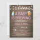 Un bébé brasse une invitation Baby shower. Invitation Baby shower de lit. Éclairage à cordes. Arrière - plan rustique en bois. Baby shower garçon ou fille. Bouteille de lait et Mug de bière. Pour plus de personnalisation, cliquez sur le bouton "Customiser" et utilisez notre outil de conception pour modifier ce modèle.