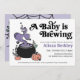 Cette mignonne invitation est parfaite pour un baby shower près d'Halloween. Un bébé est en train de brasser !