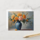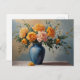 Un bouquet de fleurs dans un vase bleu Carte postale Ramenez chez vous le charme d'une belle carte postale avec une belle peinture à l'huile d'un bouquet de fleurs dans un vase bleu. Parfait pour ajouter une touche d'art à votre espace ou envoyer une note sincère - achetez dès aujourd'hui et partagez la beauté!