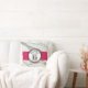 Marbre blanc, rose fuchsia, cercles dessinés à la main noire dans un oreiller de lancer personnalisé. Un cadeau jeune adolescente moderne et branché pour seize ans.