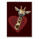 La couleur arrière - plan peut être changée ! jolie girafe douce qui sort d'un cadre de coeur rouge foncé