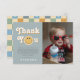 Ce carte de remerciements super de 1er anniversaire de garçon capture les années 70 vibrations rétro avec un joli thème bleu sourire, et un motif bleu pastel à damiers au dos. Entièrement personnalisable, il comprend de l'espace pour votre message, une photo et un nom. Parfait pour un anniversaire de naissance de "One Cool Dude".