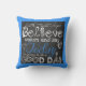 Notre coussin inspiré de beau jour comporte une conception des textes utilisant de diverses polices de blanc sur un arrière - plan noir de regard de tableau avec un bruit de bleu pour la couleur avec une frontière assortie bleue ! Le texte lit "l'espoir de confiance de foi…… croient, réveillez-vous et dites aujourd'hui va être un BEAU JOUR" !