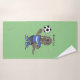 Cet heureux dragon de Komodo joue au football ! Dessiné dans un style de dessin animé amusant.