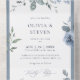 Un Dusty Blue Floral QR Code Tout en une invitation