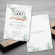 Célébrez la bénédiction de la nouvelle vie avec cette magnifique invitation de baby shower chrétien. Avec un arrière - plan de verdure doux et serein, cette invitation met en lumière une Bible au centre, avec les mots sincères ci-dessus disant : "Un enfant de Dieu est en route !" Parfait pour honorer le précieux don de Dieu, ce design reflète la foi, la gratitude et la joie. Idéal pour ceux qui souhaitent placer Dieu en premier et célébrer le miracle de la vie d'une manière significative et spirituelle. Cette invitation est un choix parfait pour les baby showers religieux ou les célébrations, en répandant l'amour et les bénédictions tandis que vous réunissez famille et amis pour cette occasion spéciale.