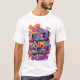 un événement de course de couleur. sur un t-shirt blanc, avec des couleurs noir, rose, bleu, orange et violet. texte sur la chemise devrait dire tms sur le dessus et colorpalooza dessous. graffiti se sentent dans un style vectoriel