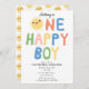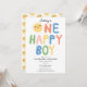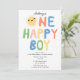 Un beau dessin d'invitation de soleil dessiné à la main. Une mignonne invitation à la fête du premier anniversaire "One happy boy". Un beau thème d'invitation d'anniversaire de soleil d'été qui peut être customisé à vos détails.
