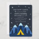 Célébrez la journée spéciale de votre bonté avec ce One Happy Camper 1st Birthday Party Birthday design. Le design comprend un ciel étoilé avec des montagnes et une tente jaune. L'inverse est un motif d'étoiles. Vous pouvez customiser plus loin en cliquant sur le bouton "PERSONNALISER".