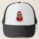 Casquette de baseball avec illustration d'un Africain Américain ou Hispanique avec cheveux noirs courts et casquette du Père Noël rouge ; en cercle rouge sur un arrière - plan blanc, avec modèle texte personnalisable pour votre nom ou message