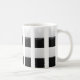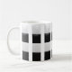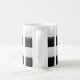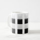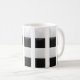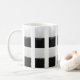 Un beau mug décoré avec des lignes verticales, quatre carrés ou carreaux en noir et blanc sont sur chacun des bandeaux verticaux, le mug personnalisé est original.