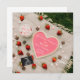 Un beau décor de pique-nique avec une carte à lettres rose bébé entourée d'une fraise et d'un chocolat