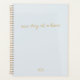 Un élégant planificateur avec écriture manuscrite typographie décontractée informelle en or "un jour à la fois" avec monogramme personnalisé en or sur un arrière - plan bleu poudreux. Le planificateur idéal pour organiser votre vie !