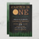 Cette invitation comporte une police en bois avec une forêt de pins. Célébrez le premier anniversaire de votre petit avec le thème "One Happy Camper" !