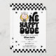 Jetez-le dans le style avec cette invitation d'anniversaire rétro One Happy Dude! 🌈 🕶️ Doté d'une ambiance les années 70 super aux couleurs audacieuses et aux accents de à damiers noir cool, ce design est parfait pour le grand jour de votre petit garçon. Amusant, amusant et entièrement personnalisable, c’est l’invitation ultime pour une fête élégante et mémorable.