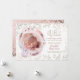 "Oh, Bonjour un lapin est arrivé juste à temps pour Pâques" Photo Baby Faire-part de naissance Cartes avec la mauve et douce couleur rose aquarelle plumes florales courre et le joli petit tableau bébé lapin.