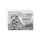 Belle carte postale blanche et grise avec léopard et citation inspirante.