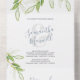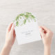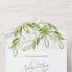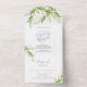 Nouvelles invitations de mariage tout-en-un à trois fois modernes dans un sceau élégant et d'envoyer format. Le design comprend un plante botanique d'été de couleur d'eau à la frontière, dans différentes nuances de vert et de sauge. Les détails sont définis dans une typographie de script de lettre à la main tendance dans un bleu poussiéreux avec une police de visage serif traditionnelle. OEuvre d'art feuille vert aquarelle de Victoria Grigaliunas. Customisez chaque rabat avec vos coordonnées de mariage et votre adresse de retour. Idéal pour les mariages sur la plage tropicale ou les mariage simples, élégantes et luxueuses. Pour voir d'autres invitations à des mariages à petit budget avec rsvp et enveloppes de Victoria Grigaliunas de Do Tell A Belle visitez www.zazzle.com/dotellabelle